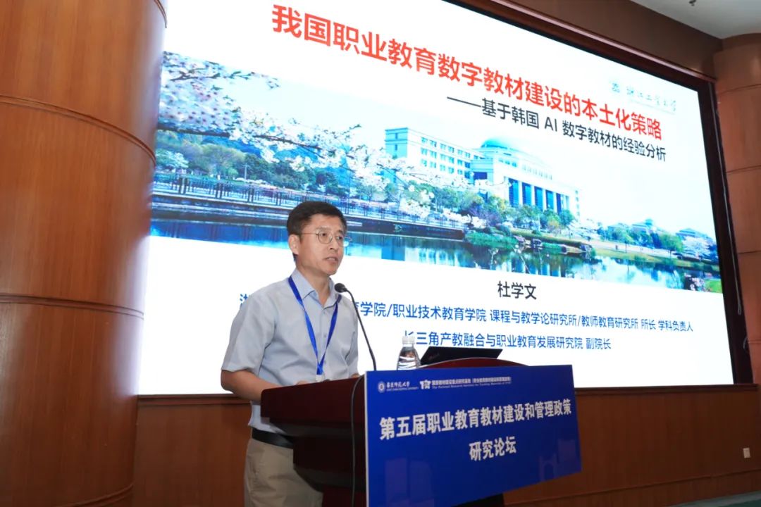 浙江工业大学教师教育研究所所长杜学文作《我国职业教育数字教材建设的本土化策略——基于韩国AI数字教材的经验分析》报告。韩国推动AI数字教材建设的核心举措包括夯实数字基础设施、系统性提升教师数字能力、构建完善制度保障以及深化公私部门协作。我国职业教育数字教材建设的本土化,应致力于科学界定职业教育数字教材的独特内涵与功能定位,加强国家级顶层设计与统筹规划,推进数字基础设施建设和教师数字素养培育,构建适配职业教育数字教材的标准规范与保障体系,激发政府、院校、企业、出版方等多主体协同创新活力。