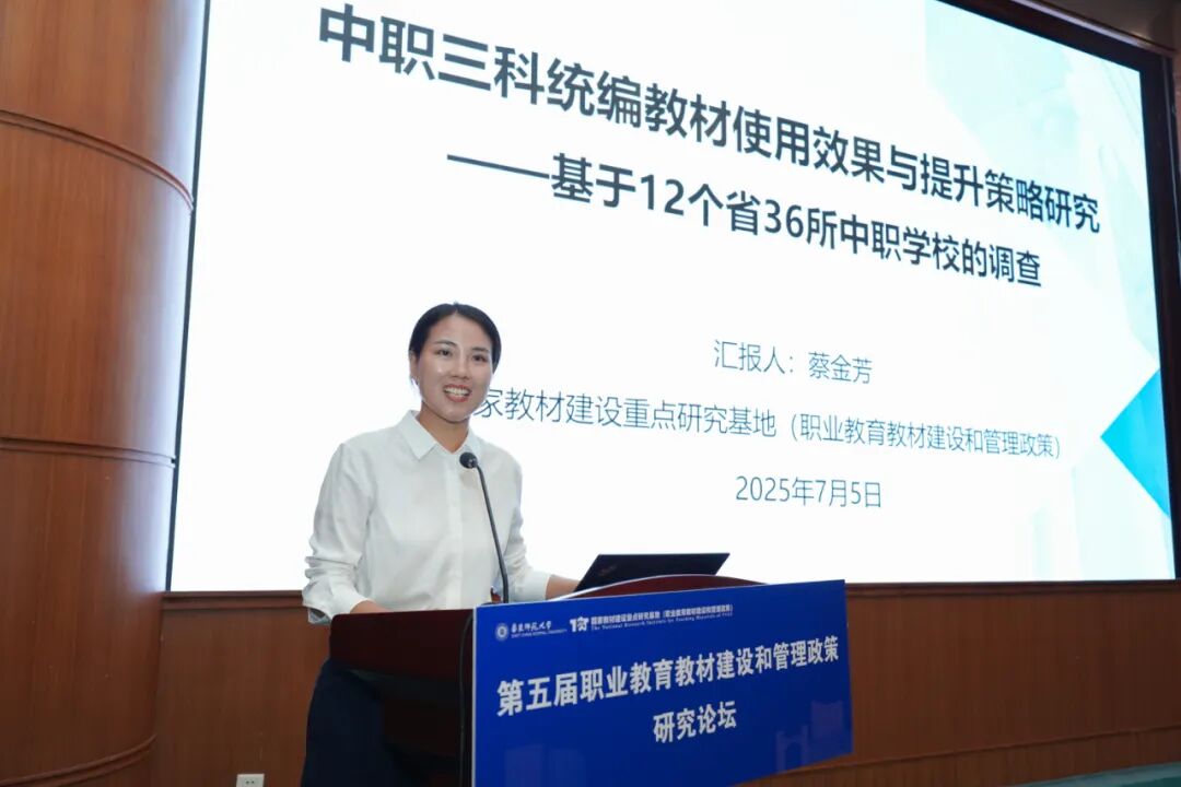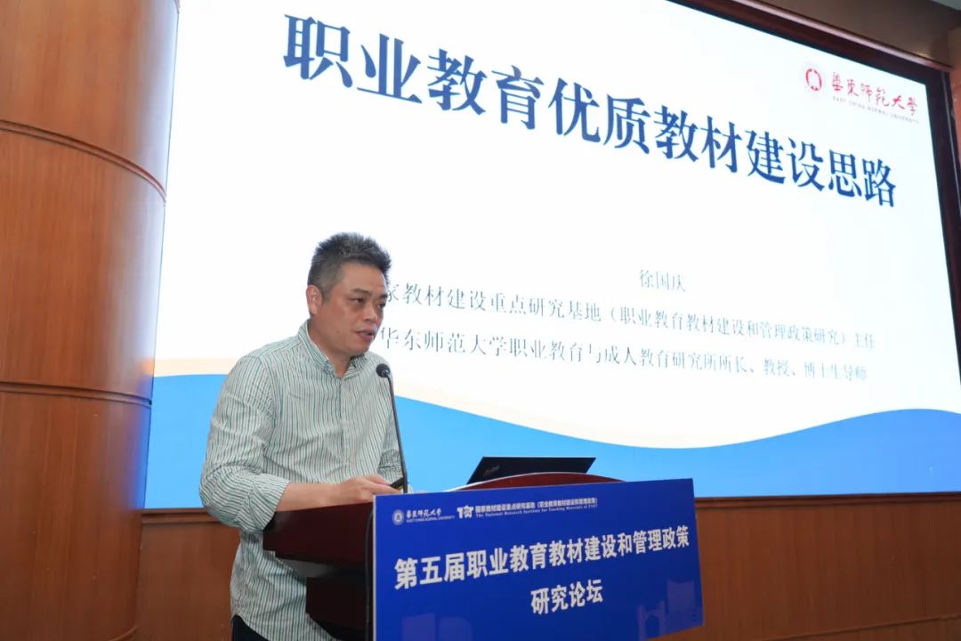 7月5日,第五届职业教育教材建设和管理政策研究论坛在华东师范大学召开。来自全国高校、科研机构、职业院校、出版机构的近200位专家学者齐聚一堂,共同研讨教育强国建设背景下我国职业教育教材高质量发展的方向与路径。本次论坛由国家教材建设重点研究基地(职业教育教材建设和管理政策研究)主办。教材是教育教学的关键要素,是立德树人的基本载体,其质量直接关系到人才培养成效,关系到职业教育高质量发展的根基。党的十八大以来,党中央、国务院全面强化对职业教育教材工作的统筹,高质量教材开发机制和管理体制不断完善,教材建设和管理工作取得了显著成效。作为新中国成立后的第一所师范大学,华东师范大学始终秉持“教育报国”的初心,将教材建设作为落实立德树人根本任务的重要抓手。截至目前,学校共有160种教材入选国家级规划教材,15种教材入选获普通高等教育精品教材奖,89种教材获上海市高校优秀教材奖,《大学语文》《数学分析》等知名教材在全国颇具口碑。