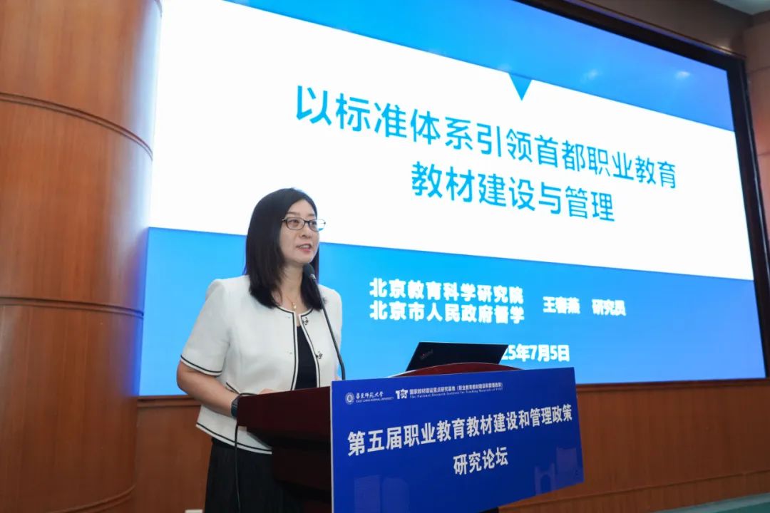 北京教育科学研究院研究员、北京市人民政府督学王春燕在《以标准体系引领首都职业教育教材建设与管理》报告中指出,北京市以“落实国家事权、强化铸魂育人、坚持守正创新”的教材观,构建了以基础标准、规范标准和改革标准为主体的职业教育教材建设与管理标准体系,为建设首都高质量职业教育教材提供了坚实的组织保障、制度保障和机制保障。